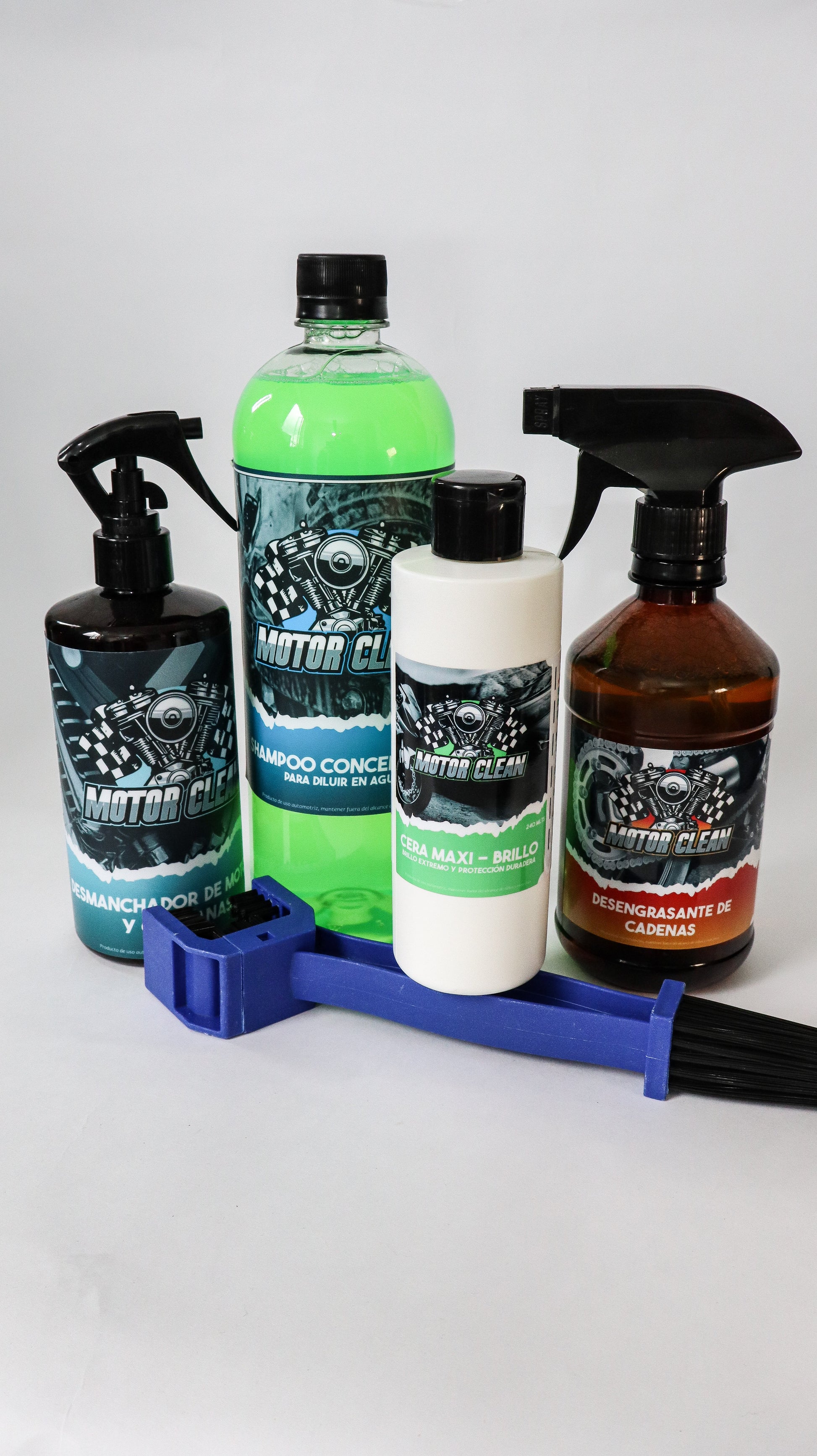 Dale a tu moto el mejor cuidado con el Combo Full Lavado Motor Clean, diseñado para limpiar, desengrasar y proteger cada rincón de tu máquina. Este kit incluye todo lo que necesitas para mantener tu moto impecable, con brillo intenso y protección duradera.